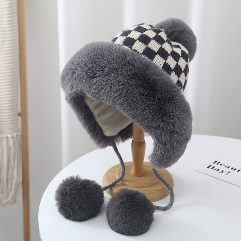 🖤 V – Velvet and Float Checkerboard Lei Feng Hat